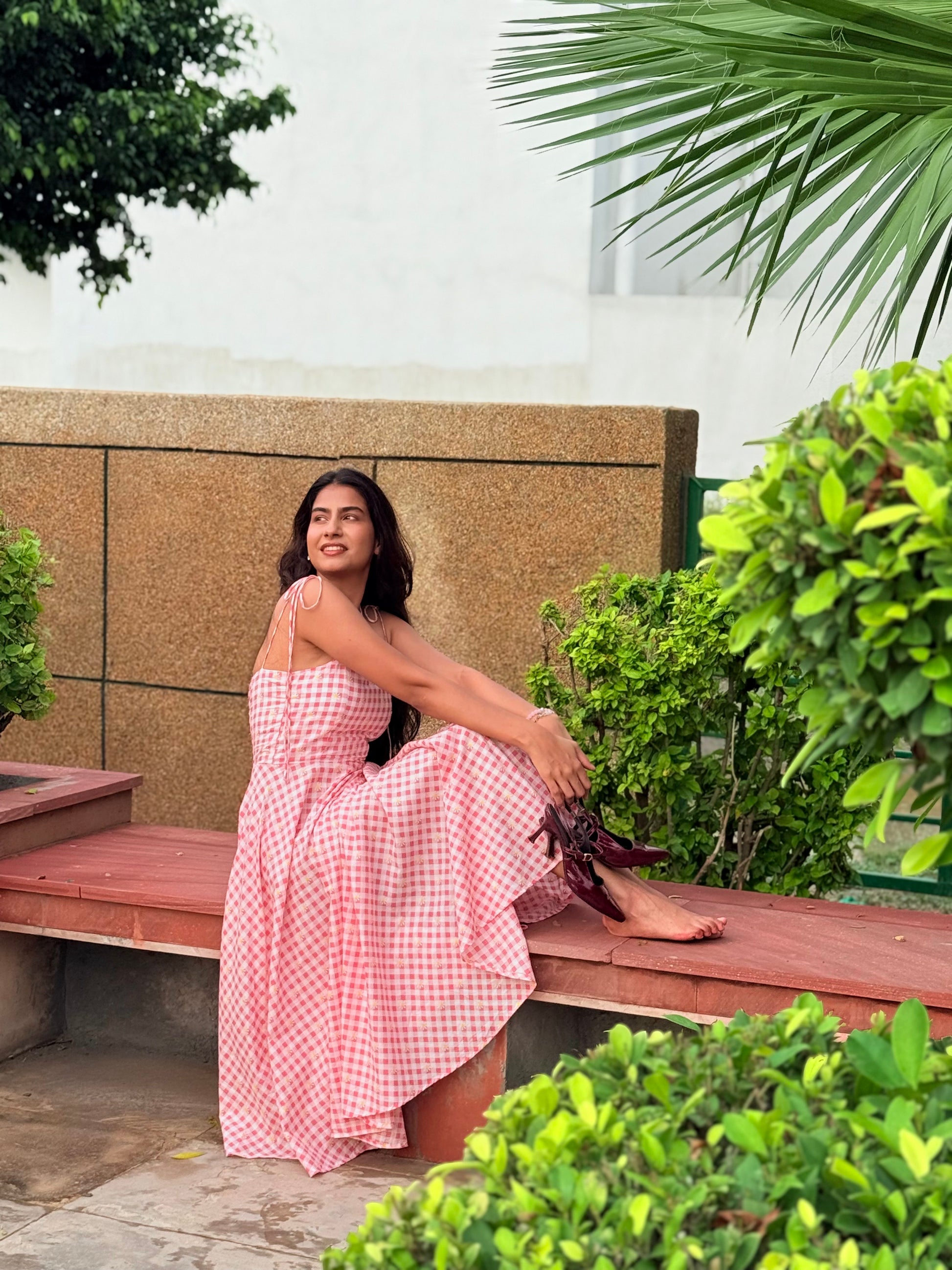 Daisy Gingham Fit and Flare Midi Dress