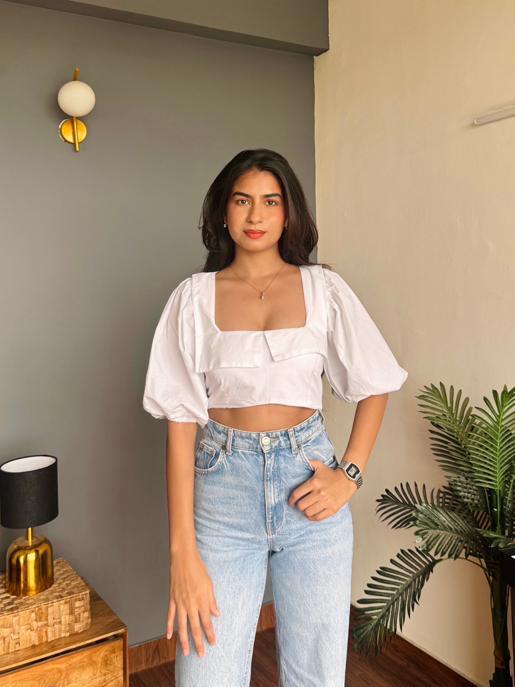 White Crop Puff Top